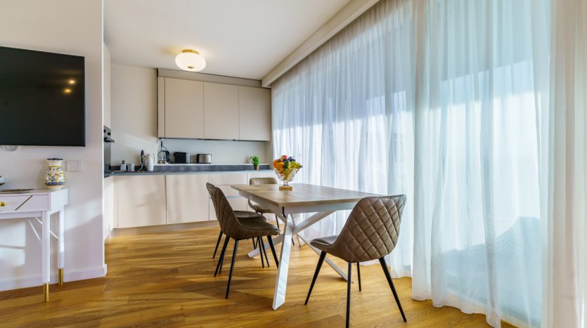 – 3 camere: living cu bucătărie deschisă, dormitor, birou/dormitor secundar