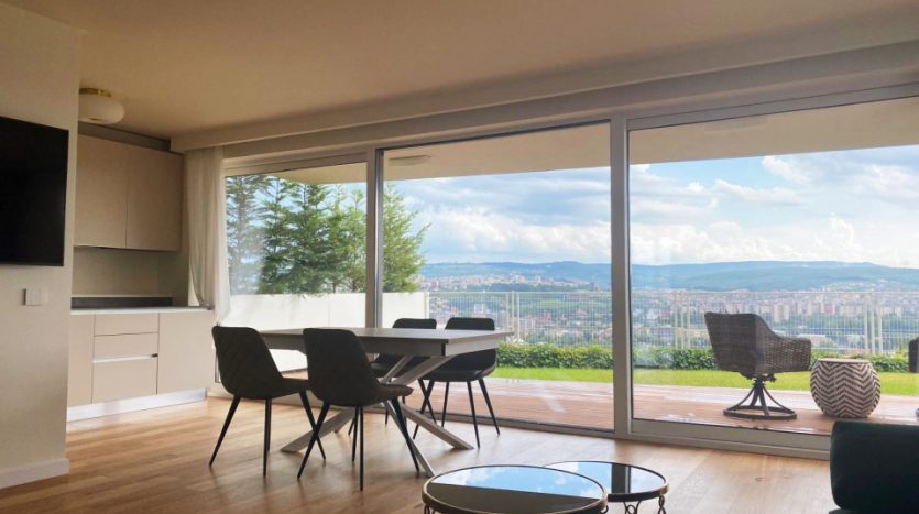 Va propunem spre vânzare un apartament cu 3 camere, cu grădină și o priveliște spectaculoasă asupra orașului.