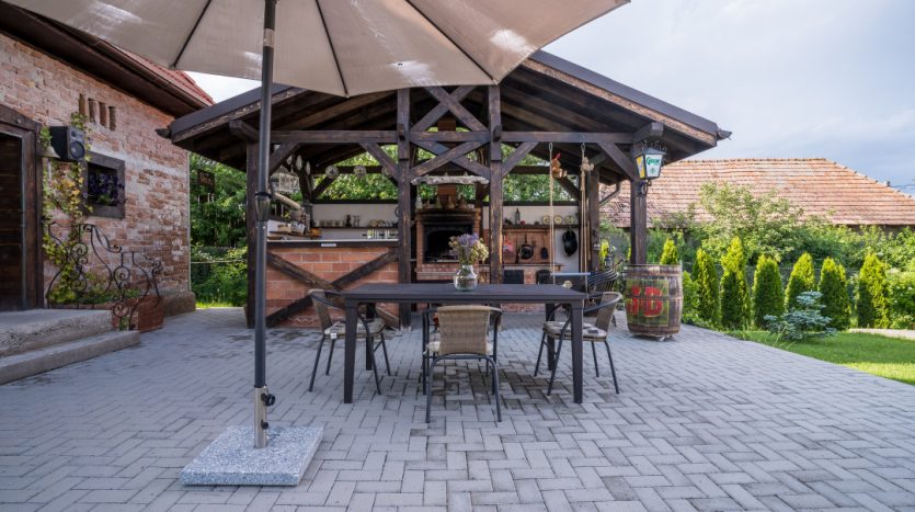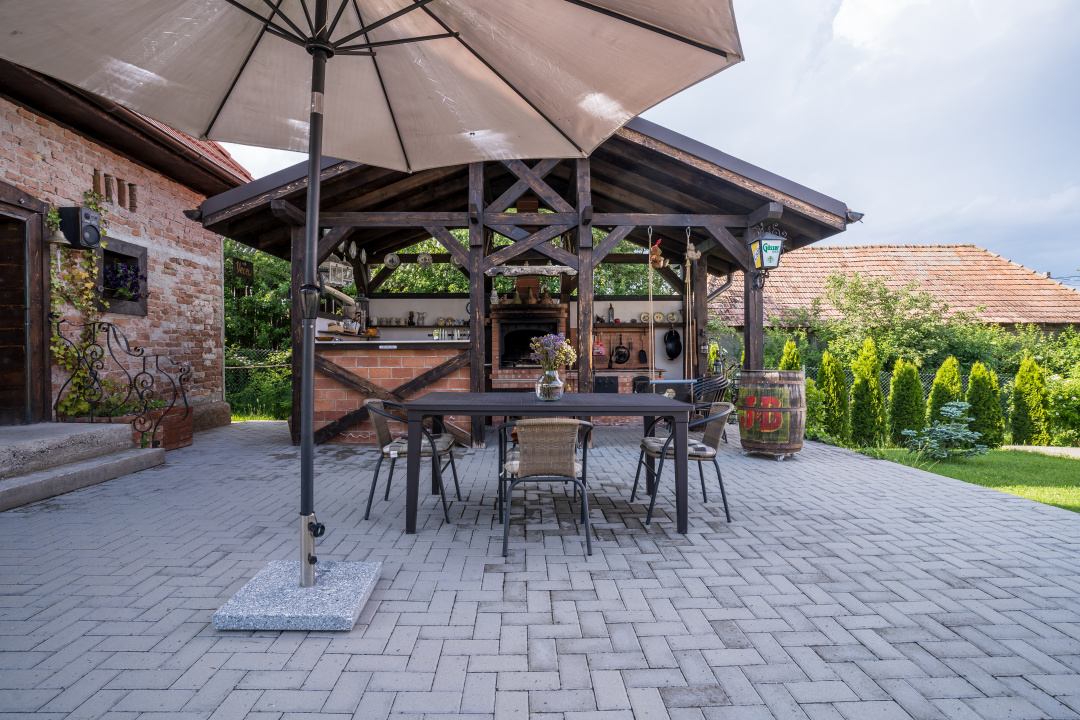 Foișor generos, cu spațiu de luat masa și zonă de BBQ, perfect pentru seri în aer liber.